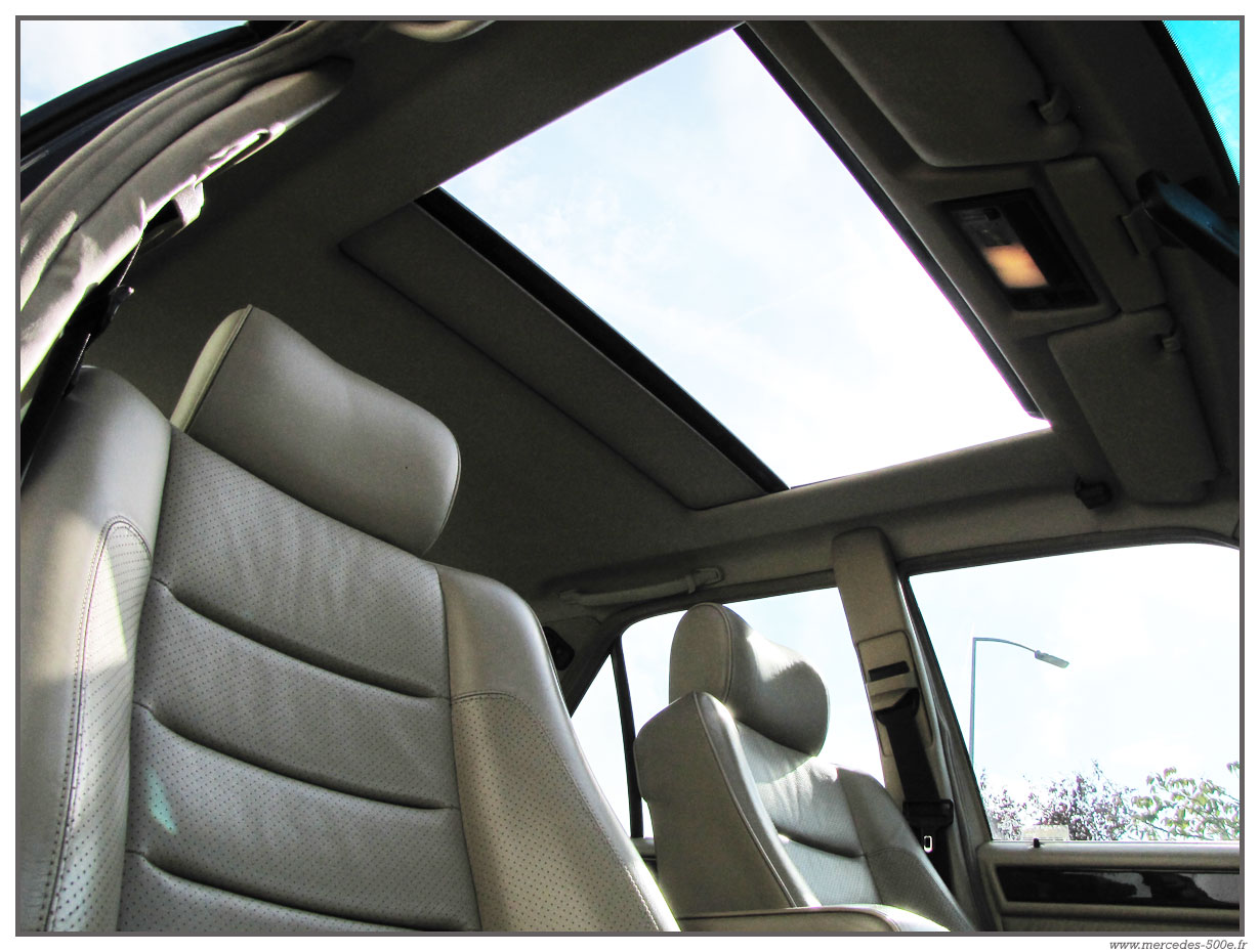 V8 - 5 L - 326 chevaux - 480 Nm - Boîte automatique bimode à 4 rapports - Sellerie cuir beige - Toit ouvrant électrique - Direction assistée - ABS - ESP - Cruise control - Toutes vitres électriques - Rétroviseurs électriques - Sièges électriques à mémoire - Volant réglable - Jantes alu 16 pouces - Climatisation - Fermeture centralisée - Antibrouillards - Fermeture centralisée - Autoradio Becker d'origine avec chargeur CD - Carnet d'entretien Mercedes.
