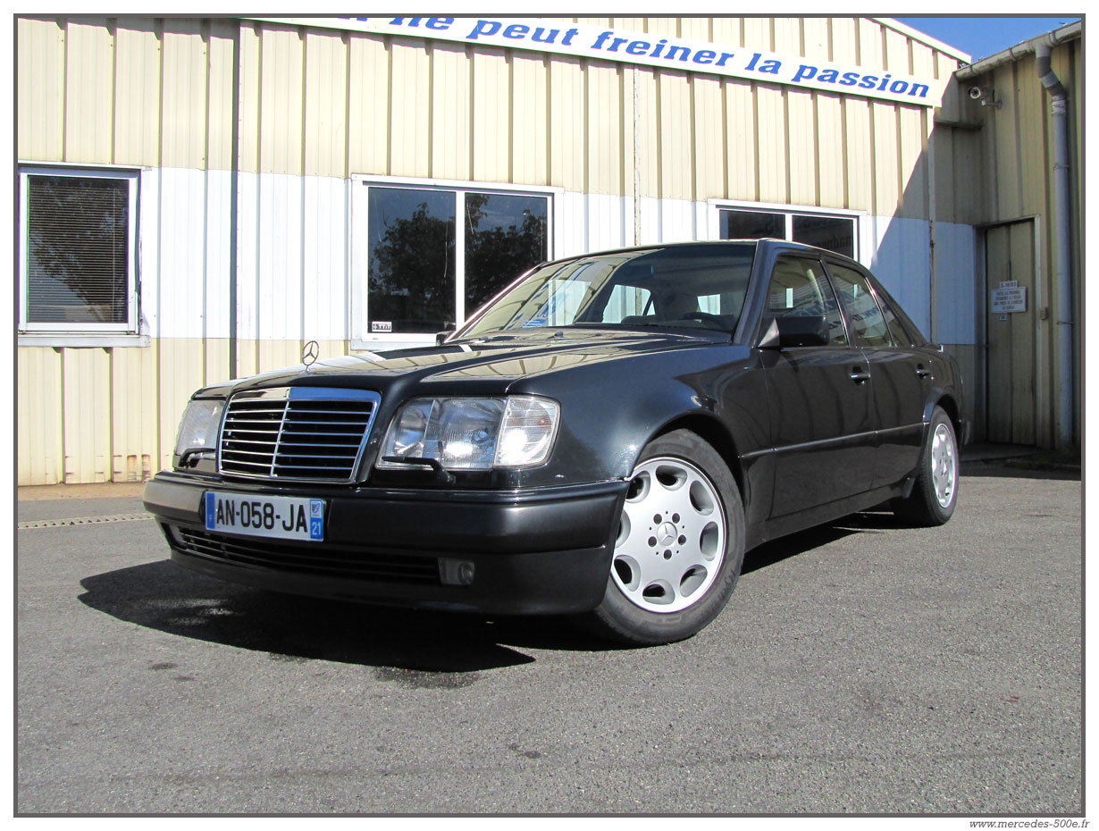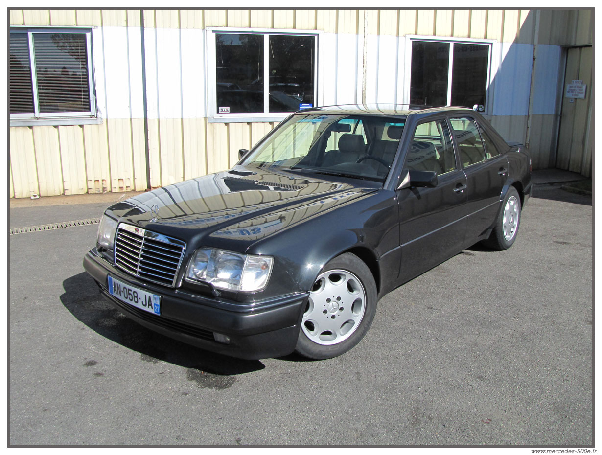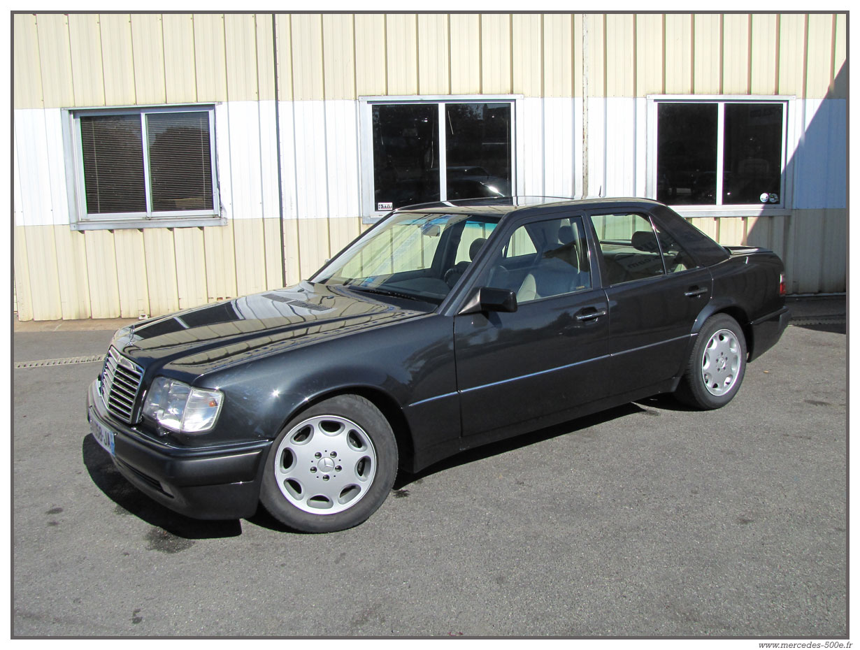 Nous vous proposons cette superbe Mercedes E500 de 1993 grise anthracite. C'est une voiture en excellent état avec une peinture très récente. Modèle 1993, c'est un modèle avec la nouvelle face avant et de nombreux équipements propres à cette série : Airbag, toit ouvrant électrique ... Cette E500 est totalement contrôlée dans nos ateliers et fonctionne parfaitement.