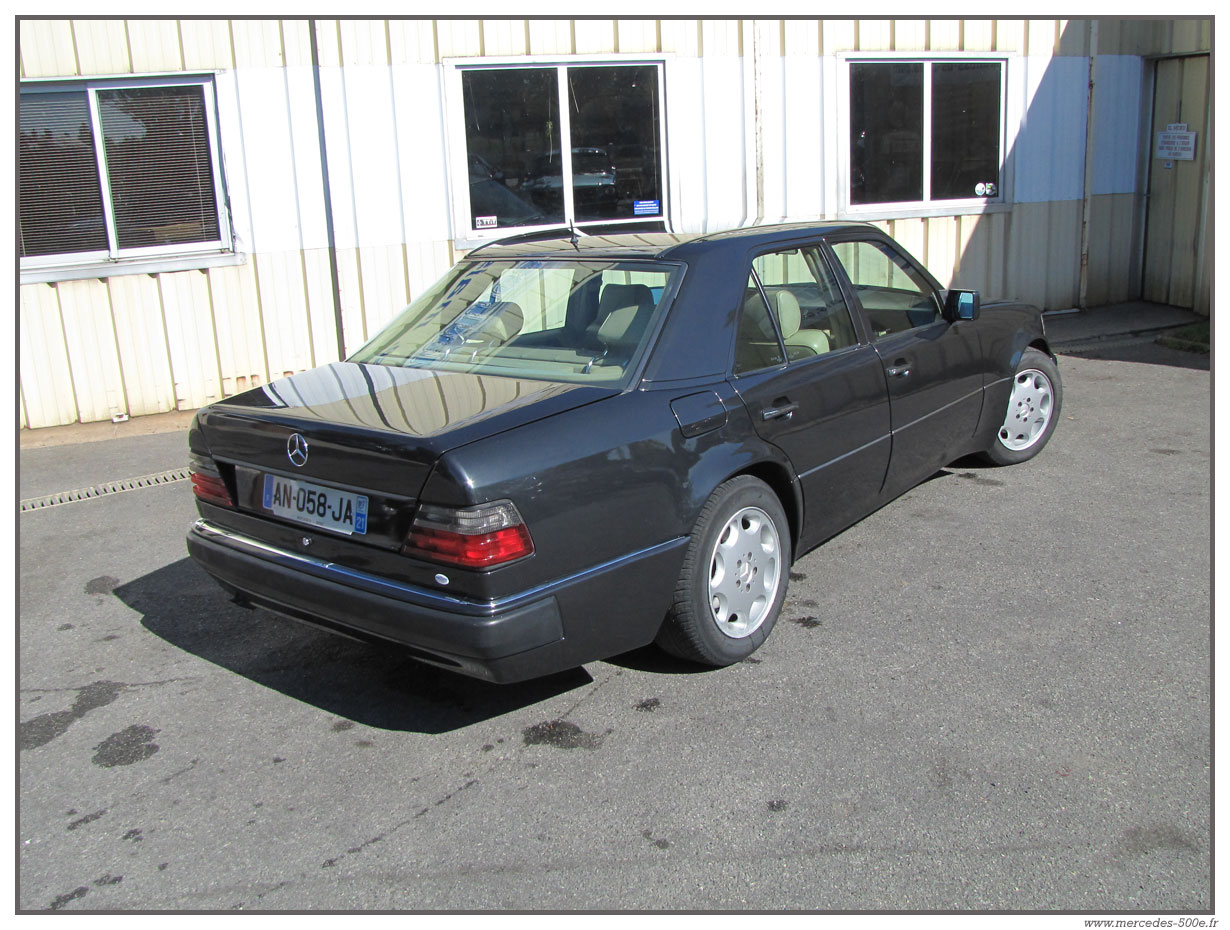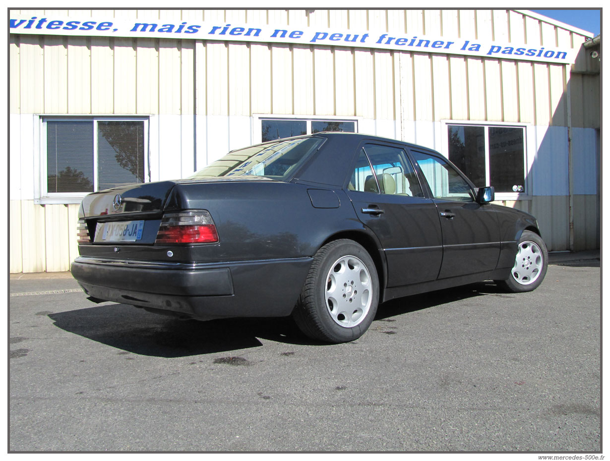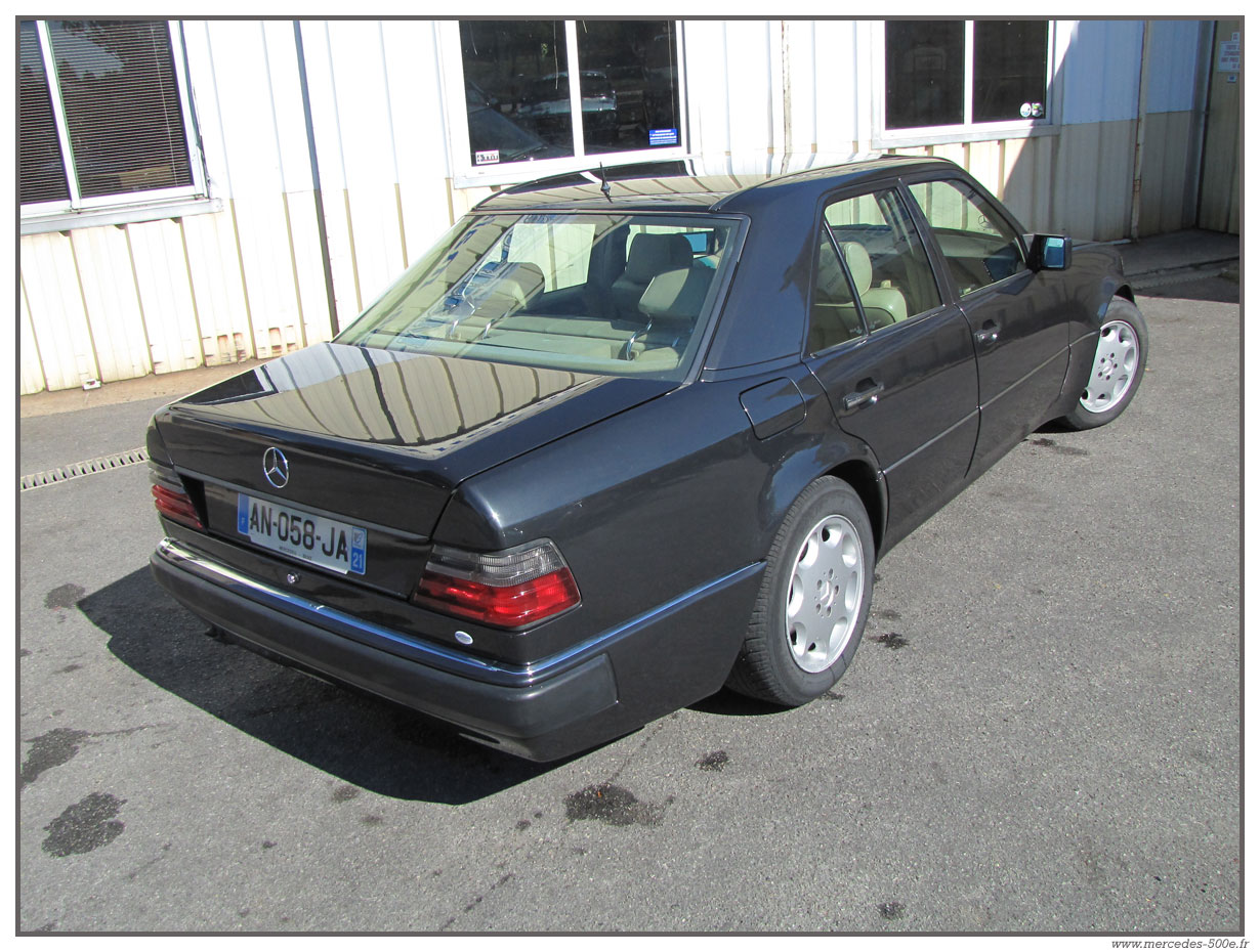 Nous vous proposons cette superbe Mercedes E500 de 1993 grise anthracite. C'est une voiture en excellent état avec une peinture très récente. Modèle 1993, c'est un modèle avec la nouvelle face avant et de nombreux équipements propres à cette série : Airbag, toit ouvrant électrique ... Cette E500 est totalement contrôlée dans nos ateliers et fonctionne parfaitement.